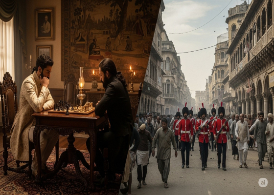 वाजिद अली शाह का समय था। लखनऊ विलासिता के रंग में डूबा हुआ था। छोटे-बड़े, अमीर-ग़रीब, सभी विलासिता में डूबे हुए थे। कोई नृत्य और गान की मजलिस सजाता था, तो कोई अफ़ीम की पीनक ही में मज़े लेता था। जीवन के प्रत्येक विभाग में आमोद-प्रमोद का प्राधान्य था। शासन-विभाग में, साहित्य-क्षेत्र में, सामाजिक व्यवस्था में, कला-कौशल में, उद्योग-धंधों में, आहार-व्यवहार में, सर्वत्र विलासिता व्याप्त हो रही था। राज कर्मचारी विषय-वासना में, कविगण प्रेम और विरह के वर्णन में, कारीगर कलाबत्तू और चिकन बनाने में, व्यावसायी सुरमे, इत्र, मिस्सी और उबटन का रोज़गार करने में लिप्त थे। सभी की आँखों में विलासिता का मद छाया हुआ था। संसार में क्या हो रहा है, इसकी किसी को ख़बर न थी। बटेर लड़ रहे हैं। तीतरों की लड़ाई के लिए पाली बदी जा रही है। कहीं चौसर बिछी हुई है; पौ बारह का शोर मचा हुआ है। कहीं शतरंज का घोर संग्राम छिड़ा हुआ है। राजा से लेकर रंक तक इसी धुन में मस्त थे। यहाँ तक कि फ़क़ीरों को पैसे मिलते तो वे रोटियाँ न लेकर अफ़ीम खाते या शराब पीते। शतरंज ताश, गंजिफ़ा खेलने से बुद्धि तीव्र होती है, विचार-शक्ति का विकास होता है, पेचीदा मसलों को सुलझाने की आदत पड़ती है। ये दलीलें ज़ोरों के साथ पेश की जाती थी। (इस संप्रदाय के लोगों से दुनिया अब भी ख़ाली नहीं है।) इसलिए अगर मिर्ज़ा सज्जाद अली और मीर रौशन अली अपना अधिकांश समय बुद्धि तीव्र करने में व्यतीत करते थे, तो किसी विचारशील पुरुष को क्या आपत्ति हो सकती थी? दोनों के पास मौरूसी जागीरें थी; जीविका की कोई चिंता न थी, घर में बैठे चखोतियाँ करते थे। आख़िर और करते ही क्या! प्रातःकाल दोनों मित्र नाश्ता करके बिसात बिछाकर बैठ जाते, मुहरे सज जाते, दाँव पेंच होने लगते। फिर ख़बर न होती थी कि कब दुपहर हुई, कब तीसरा पहर, कब शाम। घर के भीतर से बार-बार बुलावा आता कि खाना तैयार है। यहाँ से जवाब मिलता—चलो, आते है; दस्तरख़्वान बिछाओ। यहाँ तक कि बावरची विवश होकर कमरे में ही खाना रख जाता था, और दोनों मित्र दोनों काम साथ-साथ करते थे। मिर्ज़ा सज्जाद अली के घर में बड़ा-बूढ़ा न था, इसलिए उन्हीं के दीवानख़ाने में बाज़ियाँ होती थीं, मगर यह बात न थी कि मिर्ज़ा के घर के और लोग उनके व्यवहार से ख़ुशी हों। घरवालों का तो कहना ही क्या, मुहल्लेवाले घर के नौकर-चाकर तक नित्य द्वेष-पूर्ण टिप्पणियाँ किया करते थे—बड़ा मनहूस खेल है। घर को तबाह कर देता है। ख़ुदा न करे, किसी को इसकी चाट पड़े। आदमी दीन-दुनिया, किसी काम का नहीं रहता, न घर का न घाट का। बुरा रोग है। यहाँ तक कि मिर्ज़ा की बेगम साहब इससे इतना द्वेष था कि अवसर खोज-खोजकर पति को लताड़ती थीं। पर उन्हें इसका अवसर मुश्किल से मिलता था। वह सोती ही रहती थीं, तब तक उधर बाज़ी बिछ जाती 